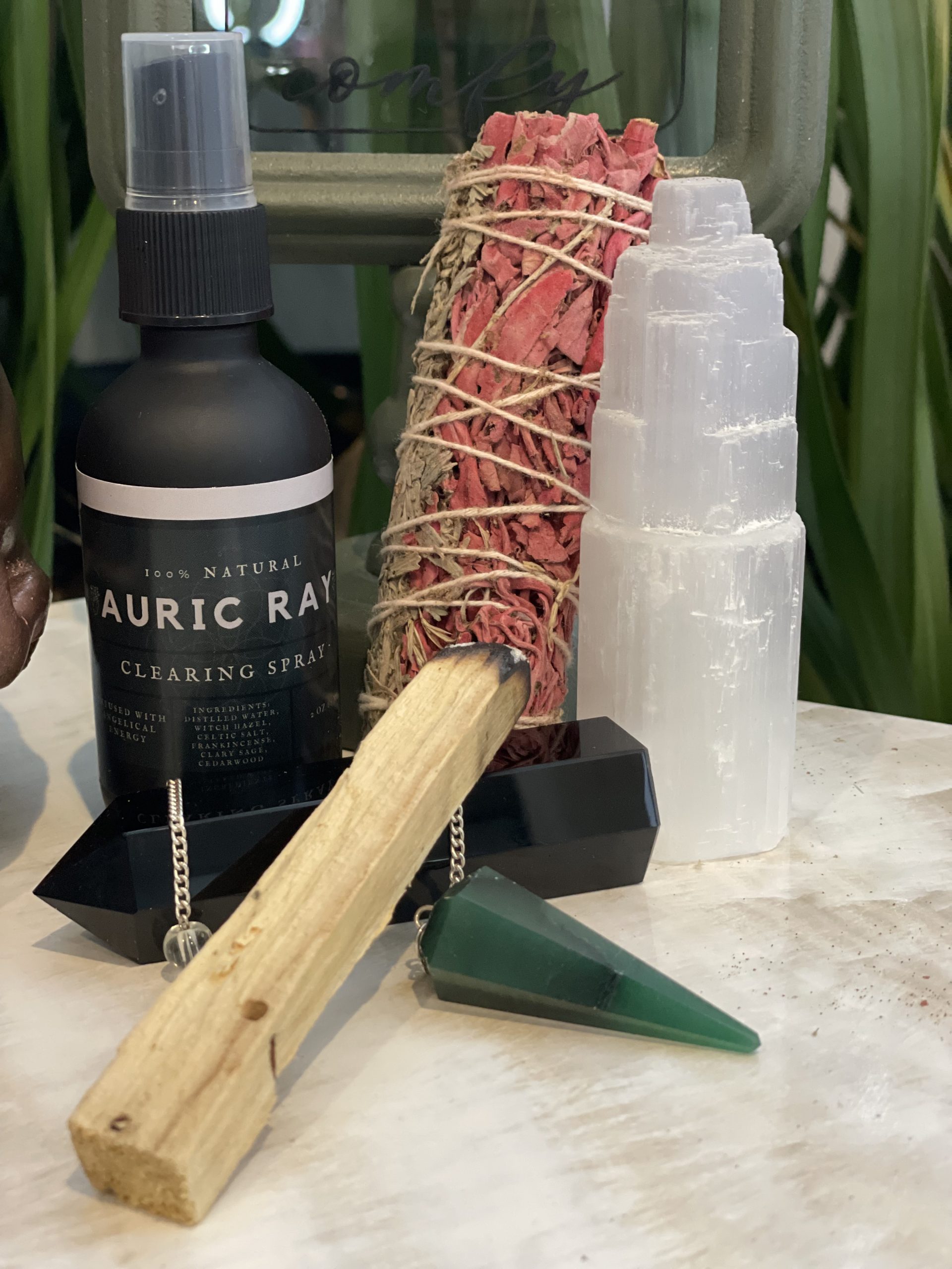Created with intention and energetic purity, this mist helps clear your auric field of stagnant or negative energy while strengthening and solidifying your energetic boundaries. Infused with calming botanicals and vibrational essences, it supports emotional balance and reduces feelings of anxiety—leaving you feeling grounded, refreshed, and protected.
